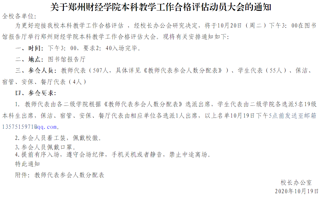 关于郑州财经学院本科教学工作合格评估动员大会的通知